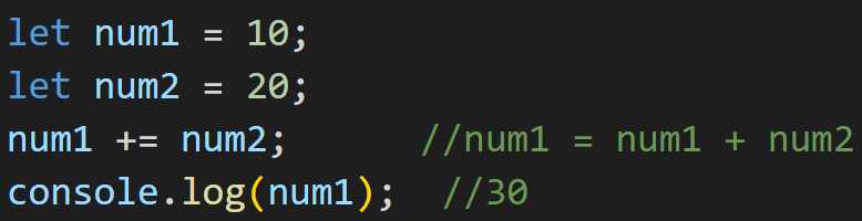 세 번째 줄의 복합 대입 연산자에 의해 다시 num1 + num2를 할당받은 것이다.