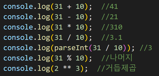 나눗셈의 나머지를 구하고 싶을 때는 %를 사용한다. (31 % 10의 경우 나머지인 1이 출력된다.)