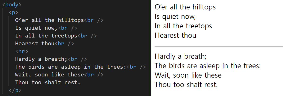 본문 내용 중에서 행갈이 하고 싶은 부분에 태그 하나만 적용.
