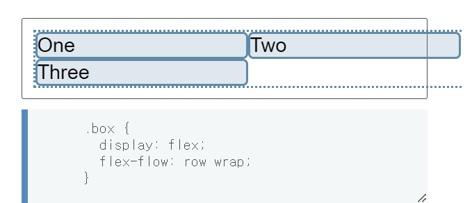 - wrap: item이 하나의 행에 들어가지 않을 경우 다음 행으로 넘어간다.