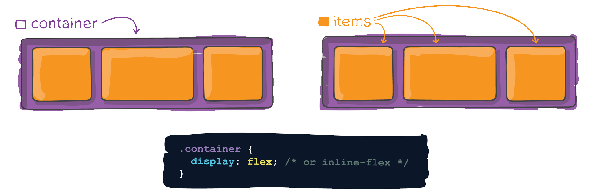 flex 속성을 사용할 때에는 내가 자유롭게 배치하고 싶은 항목들을 감싸고 있는 컨테이너를 flex로 지정한다. flex로 지정된 컨테이너의 일차 자식이 flex 항목이 된다.